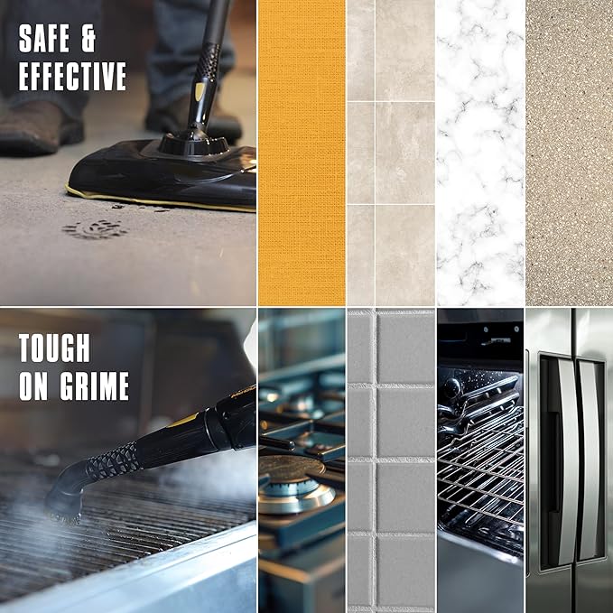- SIMPLE CLEANING — Deep clean using pressured steam to eliminate grease, grime, and stains from a wide variety of surfaces including ceramic tile, granite, wood flooring, laminate, appliances, and more.