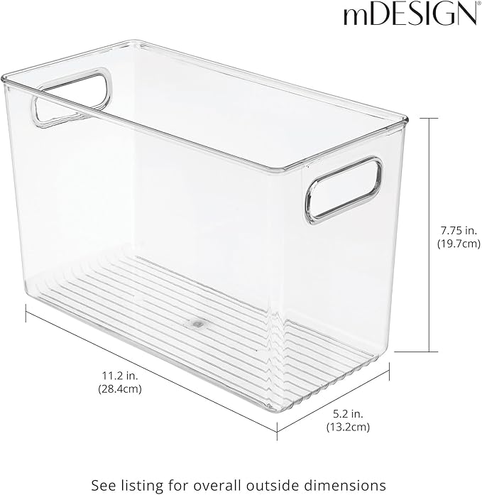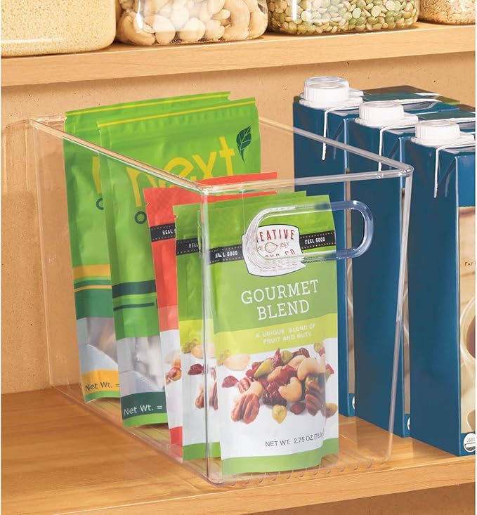 mDesign Plastic Modern Kitchen, Pantry Food Storage Container Bin w/ Handles - Cabinet, Fridge/Freezer, Countertop Organizer - Snacks/Drink/Appliances; Ligne Collection, Clear, 12x6x7.75 (Pack of 1)