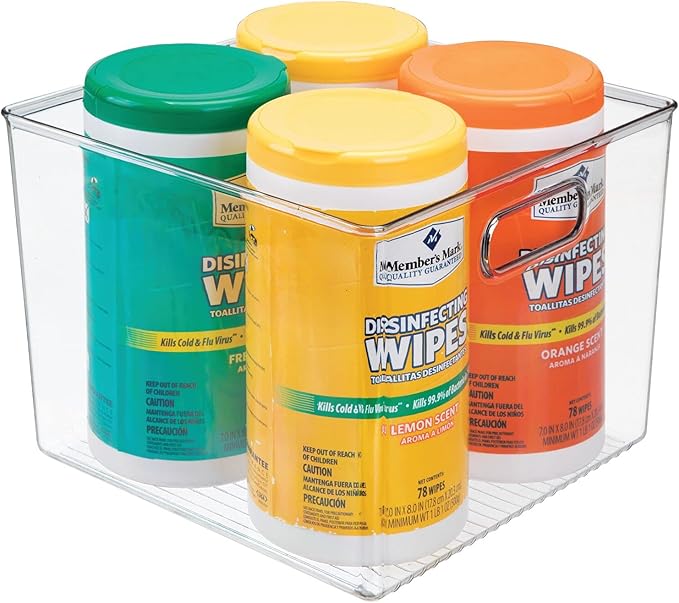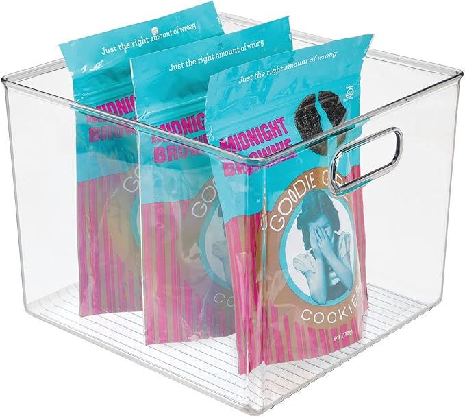 mDesign Plastic Modern Kitchen, Pantry Food Storage Container Bin w/ Handles - Cabinet, Fridge/Freezer, Countertop Organizer - Snacks/Drink/Appliances; Ligne Collection, Clear, 10x10x7.75 (Pack of 1)
