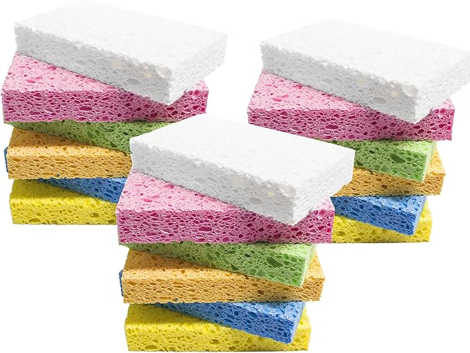 ARCLIBER Cleaning Scrub Sponge,Cellulose Non-Scratch for Kitchen,Bathroom,Cars,Colorful Compressed Sponge (18 Pack)