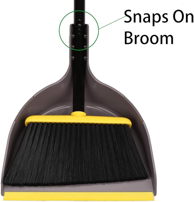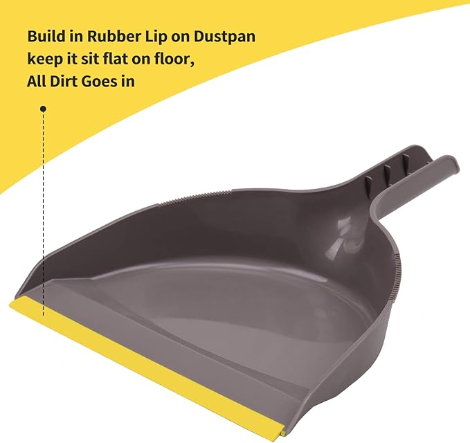 - 🌿Broom head measure 10.2" Width_Angle Broom design, Angled head of stiff bristle makes kitchen broom easy to reach into corners and under cabinets.The rubber lip in front of dustpan keep flat on floor,All dirt goes in dust panwhen sweeping