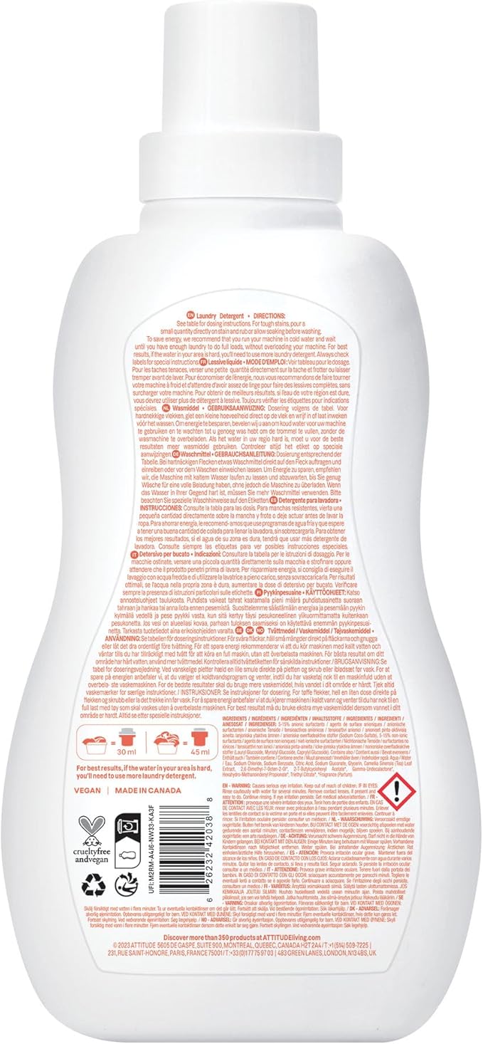 ATTITUDE Baby Laundry Detergent, EWG Verified, Plant and Mineral-Based Formula, HE Compatible, Vegan Household Products, Pear Nectar, 35 Loads, 35.5 Fl Oz