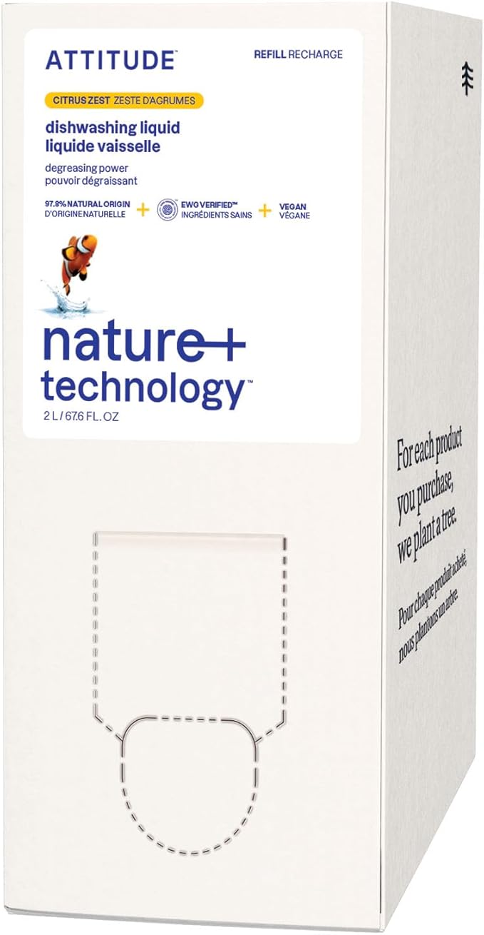 ATTITUDE Dish Soap Refill, EWG Verified, Plant-Based & Vegan Dishwashing Liquid, Naturally Derived, Citrus Zest Scent, 67.6 Fl Oz