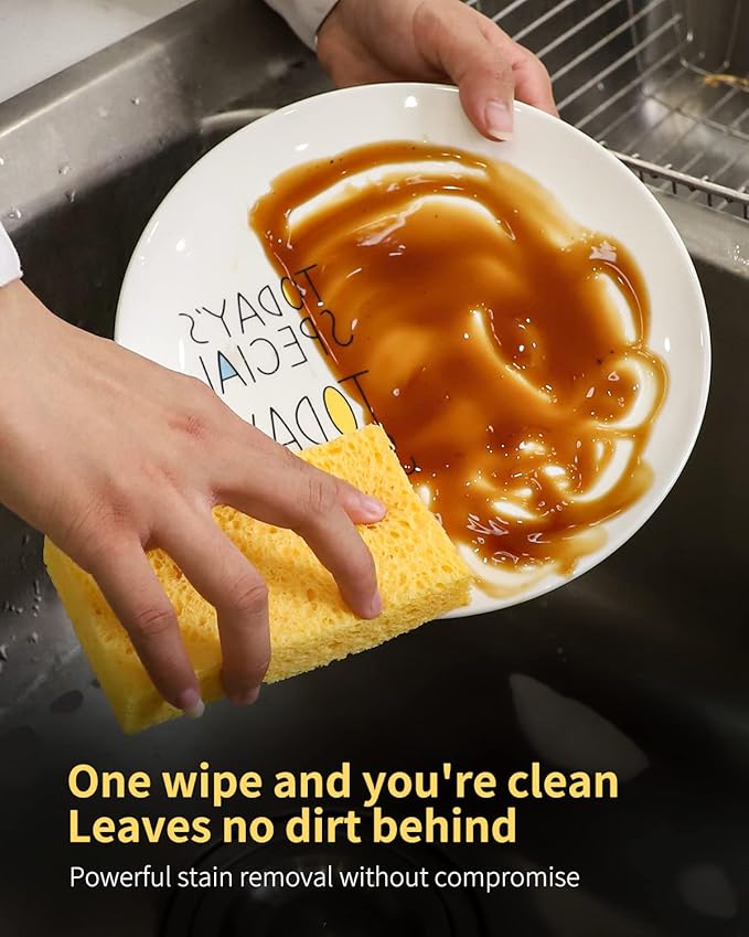 - 100% BIODEGRADABLE - Use premium quality wood pulp to make these cellulose sponge.No bad odor like other sponges, and you can safely sanitize them in the dishwasher.