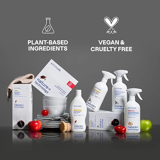ATTITUDE Dishwasher Pods, Plant-Based & Vegan, Phosphate-Free Detergent Tablets, Naturally Derived, Unscented, 26 Count (Pack of 6)