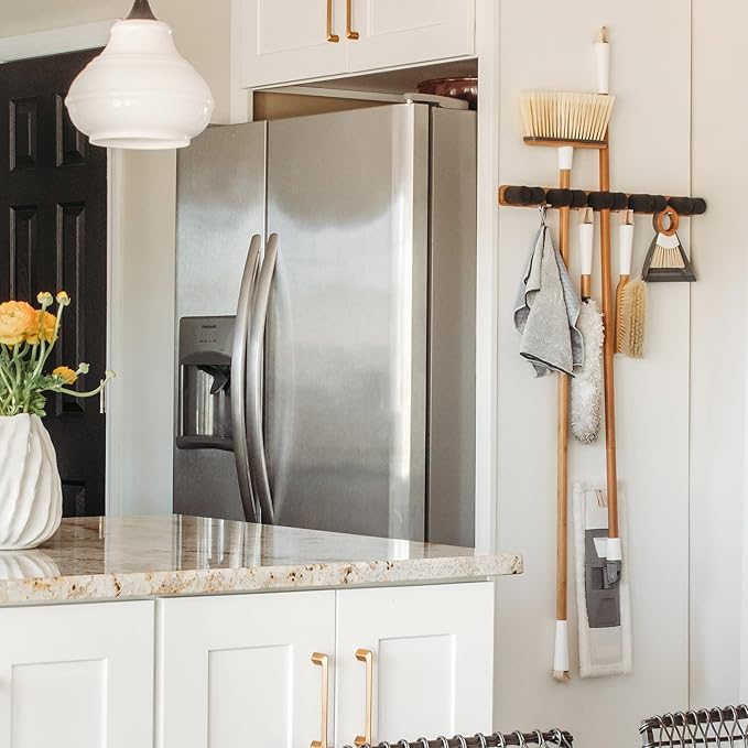 - MOP & BROOM ORGANIZER: Instantly organize your closet, laundry room, mud room, garage, or entryway; keep your long handled cleaning or garden tools off the floor and easily accessible, maximizing small spaces.