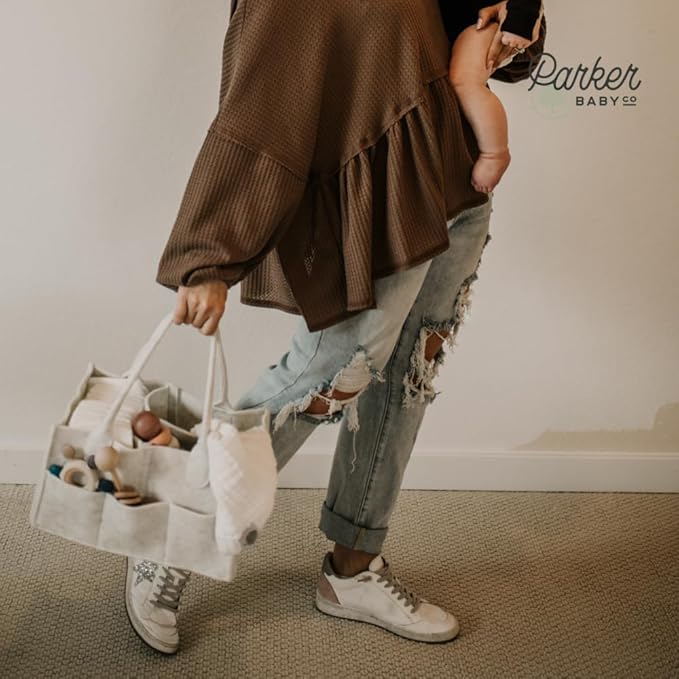 Parker Baby Diaper Caddy - Nursery Storage Bin and Car Organizer for Diapers and Baby Wipes - White, Regular