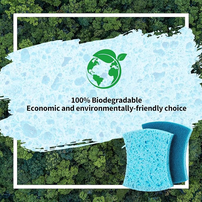 - Versatile and Efficient: Our sponges' unique double-side design ensures that it can be used efficiently. The sponge is soft enough for delicate surfaces like glass and non-stick cookware and also tough enough to remove stubborn stains and grime from countertops, sinks, and other surfaces. Plus, it can be used with just water or your favorite cleaning solution, making it a versatile tool in your cleaning arsenal.