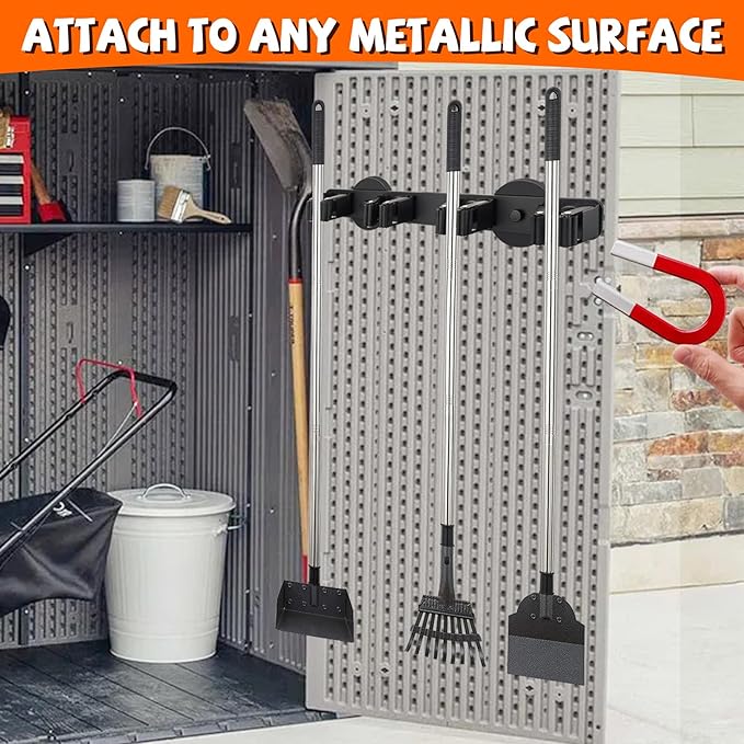 - [Non-slip Broom and Mop Holder]: The useful magnetic broom holders attach to any metallic surface without drilling. Anti-rust and anti-scratch magnetic base, will not damage or scratch toolboxes, tool cabinets, or metal cabinets