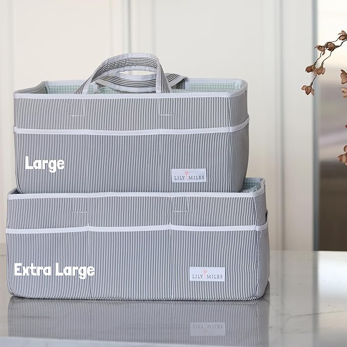 Lily Miles Baby Diaper Caddy - Organizer Tote Bag for Baby Girl Essentials - Baby Shower Basket - Nursery Must Haves - Registry Favorites - Newborn Caddie Car Travel - Gray/Blush, Extra Large