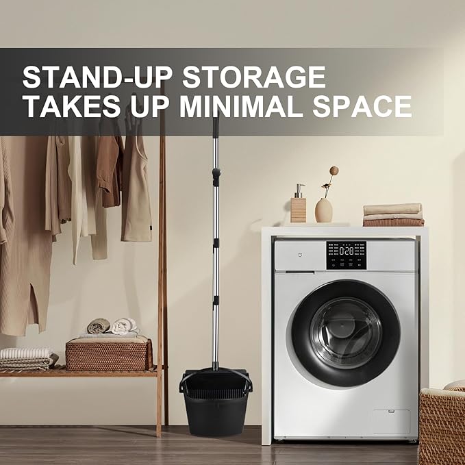 - [Space-Saving Dustpan and Broom Combination] Streamline your cleaning routine by securing the dustpan in an upright position for easy emptying. Hang the broom on the dustpan for compact storage – they stand tall together, poised for your next cleaning challenge. This collapsible broom ensures both convenience and optimal use of storage space.