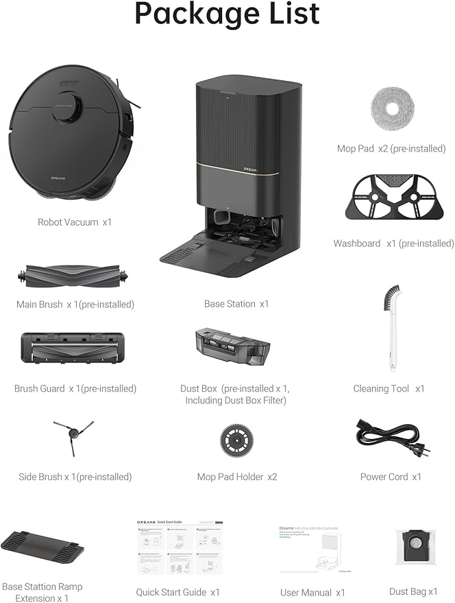 - Special Feature : ● Auto Maintenance: Removable Mop for Carpet Cleaning, Intelligent Removable&Liftable Mop, Smart Mop & Washboard Cleaning, Auto Water & Solution Refilling, Mop Rewash & Reclean, 159℉ Hot water mop washing, Dust Emptying for 75 Days, Self Cleaning&Self Air Drying, Advanced Color Sensing for Used Water;, ● OmniDirt Detection, ● Liftable Side Brush and Main Brush, ● Side Brush & Mop Extend, ● 12,000Pa Suction, ●Extended Battery Life, ●Precisely avoids over 80 types of obstacles,, ●App Control:Multi-Floor Mapping, No-go Zone, Customized Room-by-romm Approach, 4 Suction Modes, Wetness Set, Cleanign Mode Set, Pet Friendly&Child Lock; ● Auto Maintenance: Removable Mop for Carpet Cleaning, Intelligent Removable&Liftable Mop, Smart Mop & Washboard Cleaning, Auto Water & Solution Refilling, M… See more