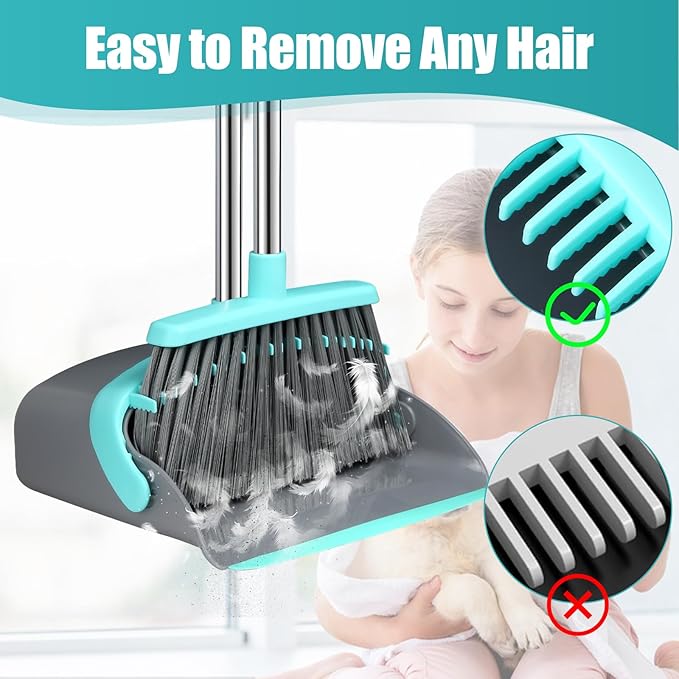 - Unique Dustpan Comb: The Outdoor Broom and Dustpan Set features unique self-cleaning comb to remove debris from broom bristles. The unique dustpan comb pulls out hair and debris so that you no longer have to pull it out manually.