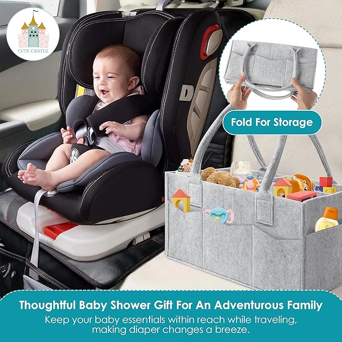 - Convenient and Portable - Featuring long and sturdy handles, our baby diaper organizers are easy to carry wherever you go. They can be folded down for compact storage in your suitcase or backpack, making them perfect for travel. Additionally, these caddies make excellent gender-neutral gift baskets for new parents, filled with essential baby items.