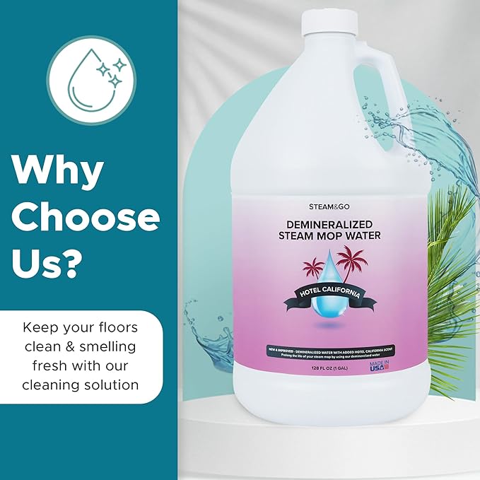 - READY-TO-USE FORMULA: Includes 128 oz of pre-mixed, scented demineralized water with a Hotel California fragrance. Simply pour into your steam mop tank and start cleaning—no measuring, mixing, or dilution required.
