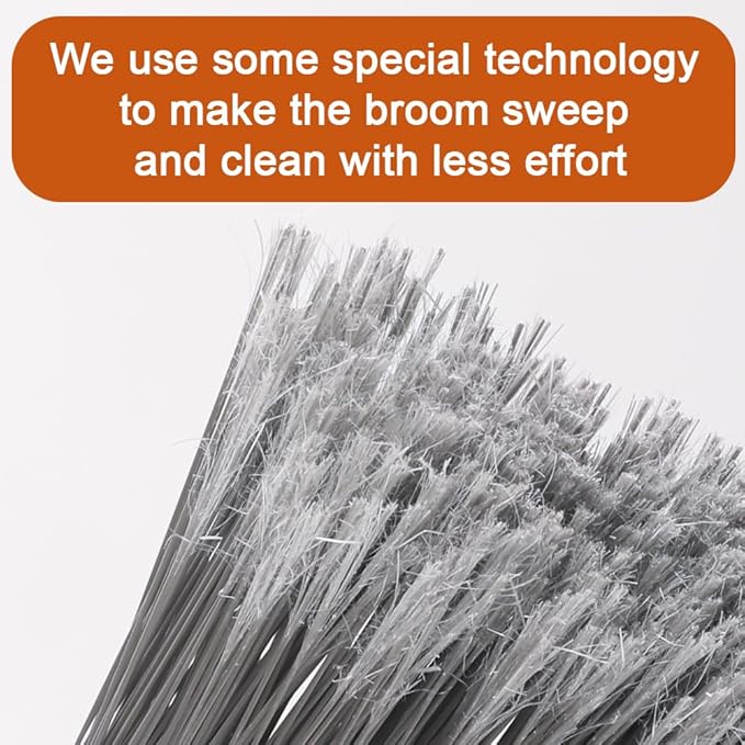 - 【Special Split-End Stiff Bristles Broom】The stiff bristle broom is made of 3 layers stiff bristles for sweeping heavy things,such as grass, soil, sands, snow, leaves.And the special split-end technology of the bristles is good for pick-up of fine particles, including sugar, salt , crumbs and etc on all hard surfaces.