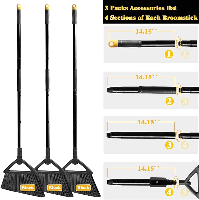 - Versatile Angle Broom: The black broom is perfect for garages, kitchens, living rooms, and courtyards, and it is great brooms for sweeping outdoor like restaurants, markets, and road cleaning