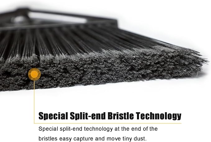 - Split-End Bristle Technology: Our heavy duty broom features firm bristles with a special split-end design that easily captures and moves tiny dust particles