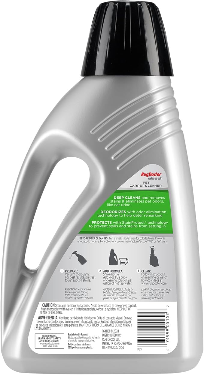 Rug Doctor Professional Triple Action Pet Stain and Odor Deep Carpet Cleaner Solution 48oz. Triple Action Formula Cleans, Deodorizes and Deters Remarking, Carpet Shampoo for Pet Stains & Odors