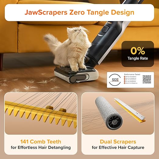 - Streak Free & No Stuck: Say goodbye to streaks and tangled hair with our innovative dual-scrapers system. This vacuum is designed to handle water without clogs, delivering a flawless finish every time. Certified by SGS and TUV, you can clean confidently, knowing your hard floors will shine without any unsightly residue