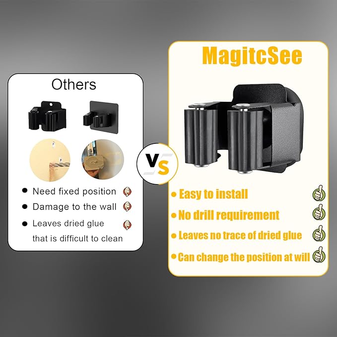 - Heavy Duty Magnetic Holder :The broom holder is structured with the powerful magnet and durable stainless hook , bear up to 9lb objects on a common 1mm ferrous metal surface ,keep your broom and mops in well organized