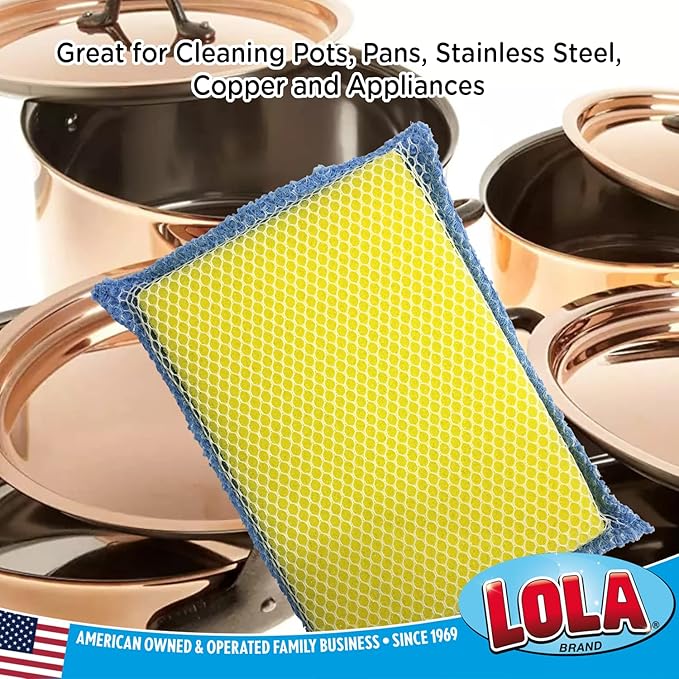 LOLA Microfiber Terry & Nylon Net Sponge Scrubber Pad, 6 Pack, Non Scratch 2-Way Cleaning, Gently Scrubs & Wipes Clean