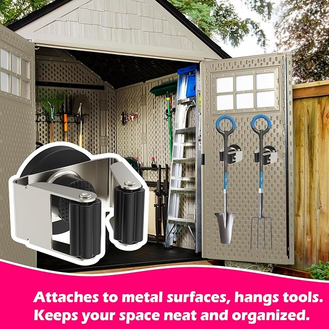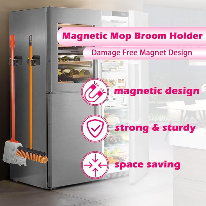 - 4 Pack Magnetic Mop Broom Holder, Heavy Duty Magnetic Mop Hanger for Refrigerators, Magnetic Mount Mop Broom Holder for Laundry Room Garage Kitchen Workshops Metal Shed