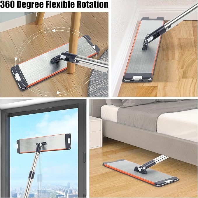 - [Corner and High] 360° rotation flat mop-head can reach to any corners and those "under-the-whatever" places. The adjustable stainless steel handle can be extended to 52 inches, much suitable to be a wet dry mop for walls, wall cleaner with long handle.