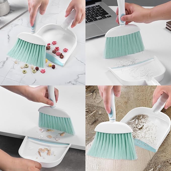 - CONVENIENT WALL MOUNTED STORAGE:Both the broom and dustpan are equipped with hanging holes, which can be vertically hung on the wall, cabinet door, or hook, saving drawer space, keeping the home clean and orderly, and making it more convenient to take and use at any time