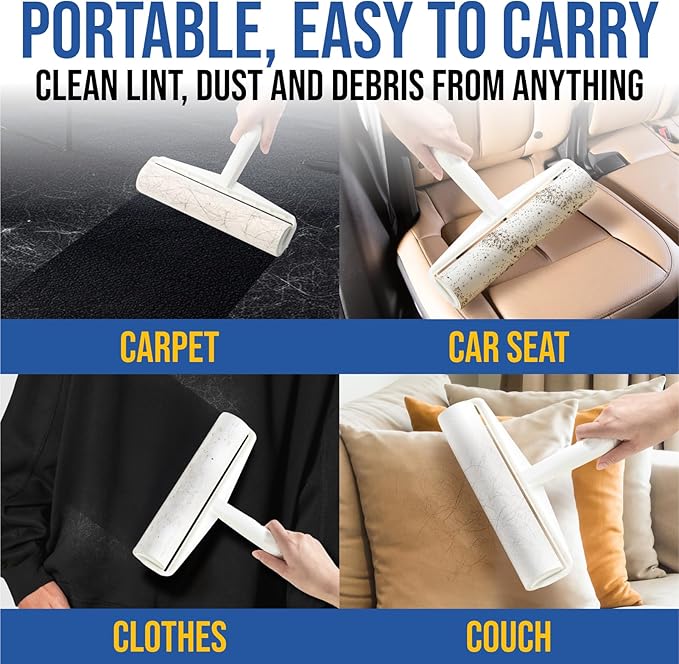 - Multi-Surface Giant Lint Roller: Whether it’s car seats, blankets, rugs, or curtains, this sticky roller is designed to tackle it all. The giant lint roller design handles big jobs with ease, making it ideal for home or travel.