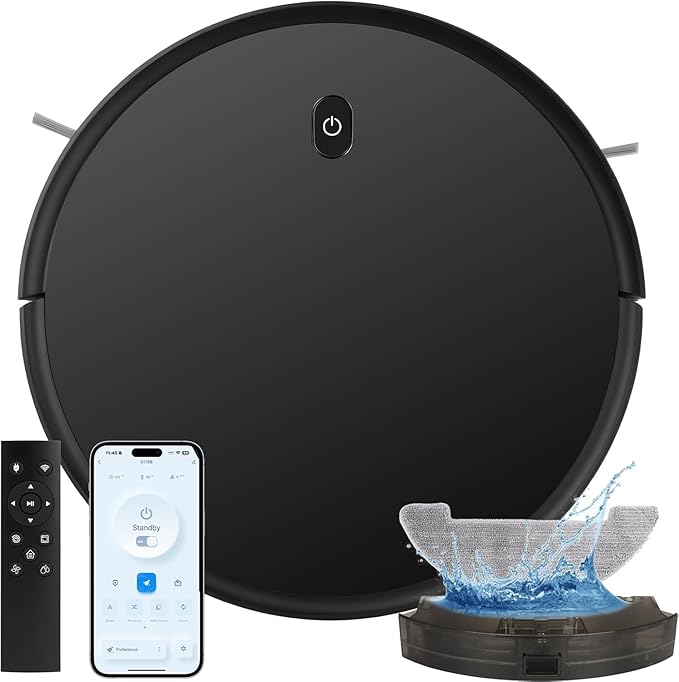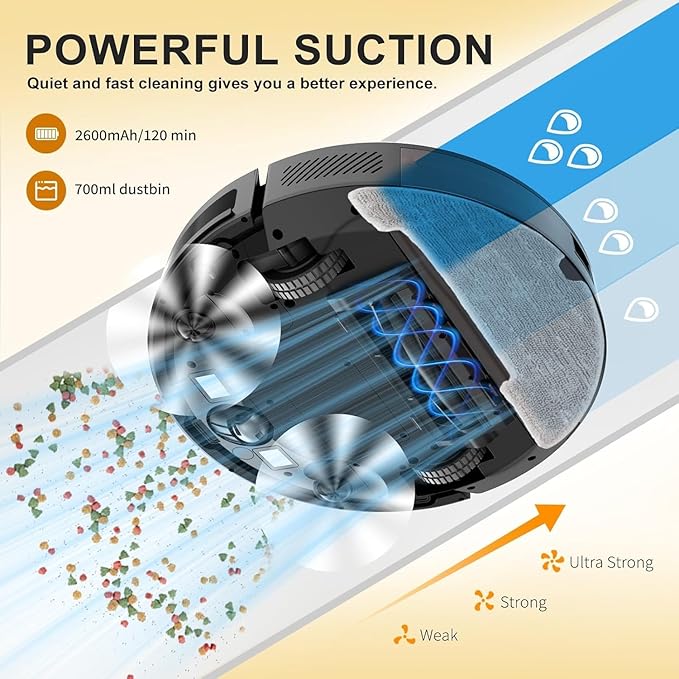 Robot Vacuum and Mop combo, 3500Pa Vacuum Cleaner Robot Navigation with high efficient roller brush, 60dB Robot Vacuum Cleaner with APP Control,Blue tooth, Ideal for Pet Hair, Carpets, Hard Floors