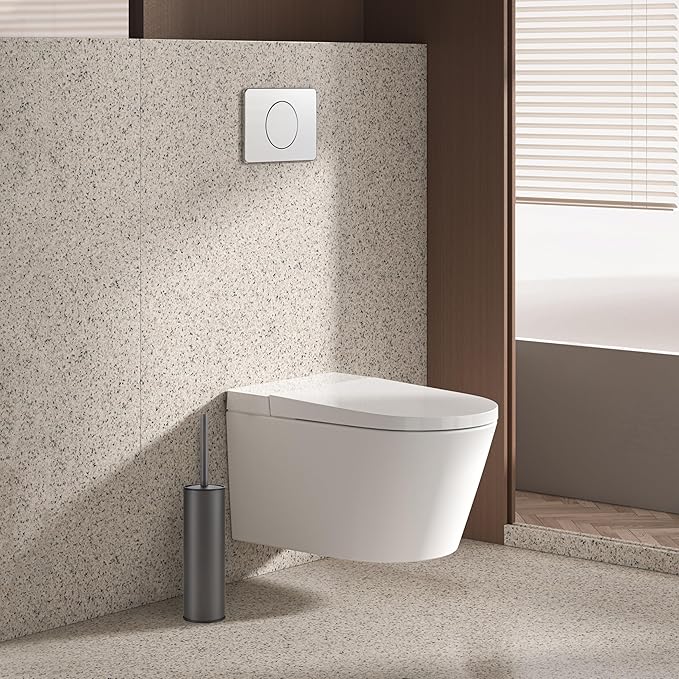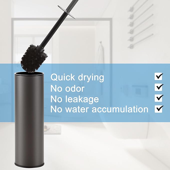 - Space-saving design:Toilet brush and holder fits into tight bathroom areas, making it easy to tuck away; Compact space saving design keeps your toilet brush hidden and provides a sanitary storage.