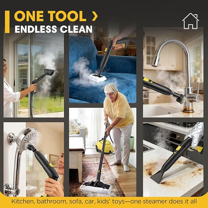 - Special Feature : 25 Piece Accessories, Chemical-Free Steam, Long Power Cord, Continuous Steam, Safe for Pets, Super Fast Heating, Lightweight & Portable Use Enjoy Steam Cleaner for Home with quick setup and safe, chemical-free cleaning for every surface. Safe to use around pets, the Steam Cleaner for Home offers powerful steam for deep cleaning in no time., Multi-Surface Steamer,, Powerful High-Pressure Cleaning with Steam Cleaner for Home – Effortlessly tackle tough stains and grime on all surfaces. 25 Piece Accessories, Chemical-Free Steam, Long Power Cord, Continuous Steam, Safe for Pets, Super Fast Heating, Lightweight & Portable Use Enjoy Steam Cleaner for Ho… See more
