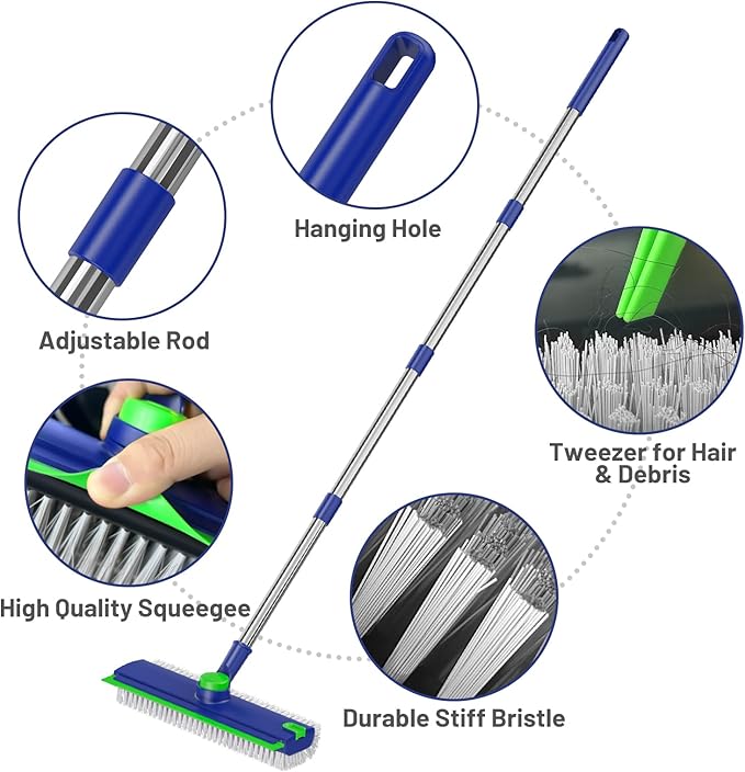 - Multifunctional 3-in-1 Floor Scrub Brush: Equipped with a stiff-bristle brush, rubber squeegee, and tweezers. It scrubs stubborn stains and scrapes dirty water effortlessly