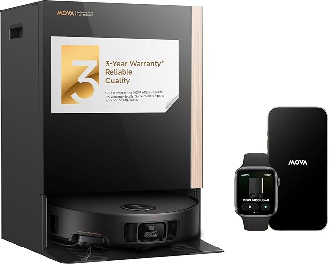 Mova Mobius 60 Robot Vacuum and Mop, 30000Pa Suction, Auto-Interchangeable Mop Pads, Liftable Navigation with 3.15inches Obstacle Overcoming, DuoSolution System Designed for Pets