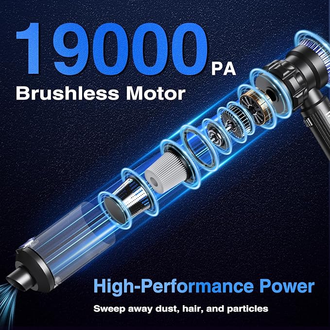 Car Vacuum Portable Cordless, 19000PA Suction Power [3 Suction Modes] & 6000mAh Battery [USB-C Charging Cable], 4-in-1 Wireless Mini Handheld Cleaner for Home, Car, Pet, Office