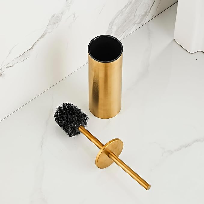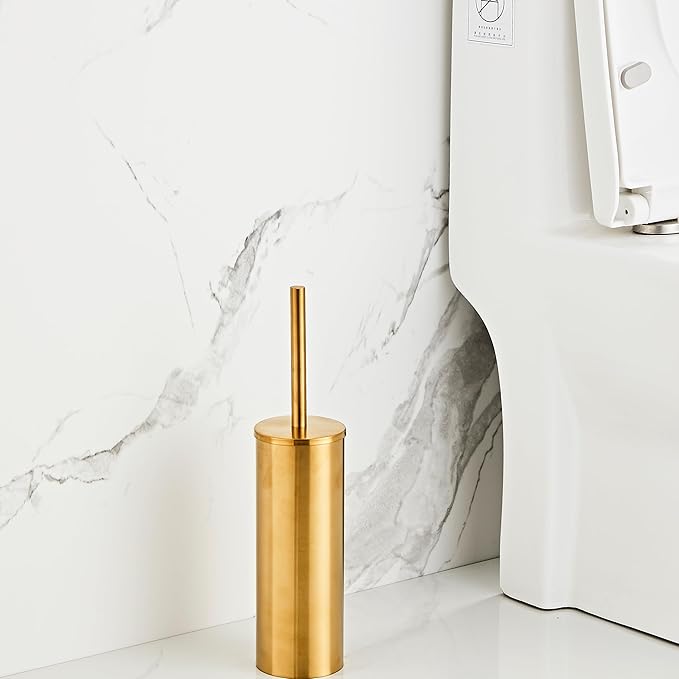 Brushed Gold Toilet Brush and Holder Set - Stainless Steel Toilet Bowl Scrubber with Replaceable Head & Splash Guard