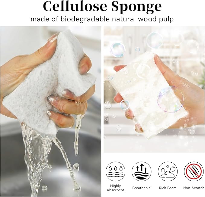- Safe & Durable: Crafted from natural wood pulp, our sponges are soft yet tough, reusable and biodegradable, and won't fall apart, delivering reliable performance wash after wash