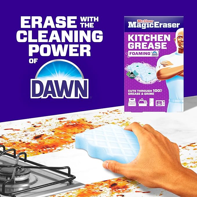 - DUAL CLEANING POWER FOR TOUGH CLEANING – Mr. Clean Magic Erasers combined with the cleaning power of Dawn is activated with water alone to cut through tough burnt-on grease and other kitchen messes on contact.