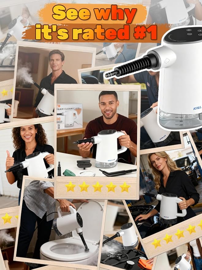 Killrose Handheld Steam Cleaner, Pressurized Steam Cleaner with 10–15s Fast Heat, Dual Power Modes & Self-Clean, Multi-Surface Steamer with 12 Accessories for Kitchen, Bathroom, Car