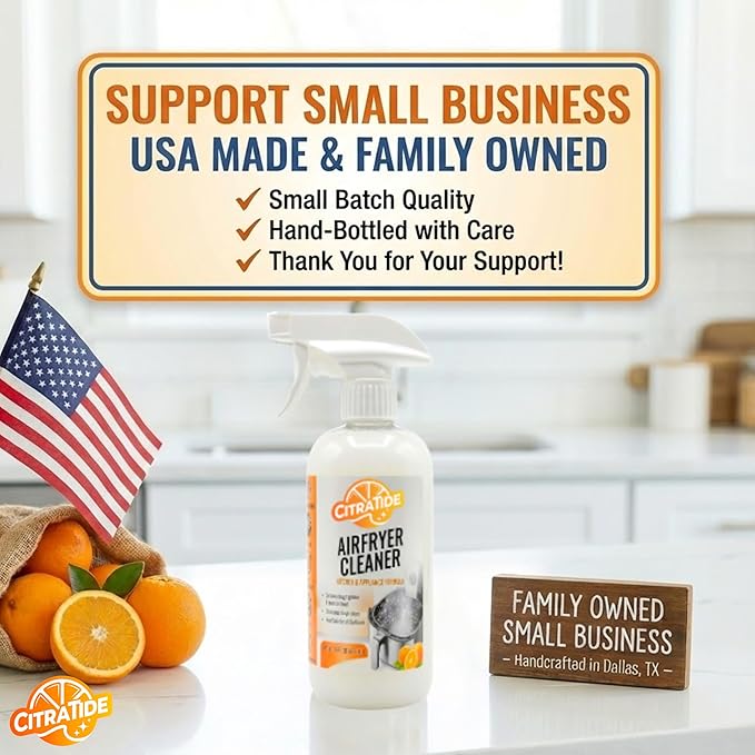 Air Fryer Cleaner Spray β Citrus Powered Grease Remover, Non-Toxic & Plant-Based, Cuts Baked-On Oil & Odor, Safe for Kitchen Appliances, USA Made β 16fl oz
