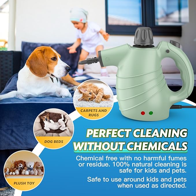 - CLEAN WITH JUST WATER, NO HARSH SMELLS: If you’re trying to cut down on strong cleaners, this steam cleaner uses tap water only—no added chemicals, harsh fumes or sticky residue on the surfaces your family touches every day. A pneumatic safety cap and child lock help keep the steamer secure while it’s under pressure, giving you extra peace of mind at home.