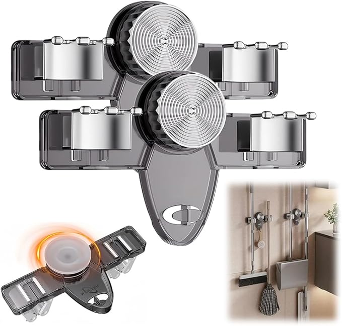 Broom Holder Mop Hanger, 2026 New No punching required Broom Hanger Organizer for Bathroom, Kitchen, Office,Utility Room,Laundry Room,Home Garden, Garage Storage and Organization Rack (2PCS Gray)