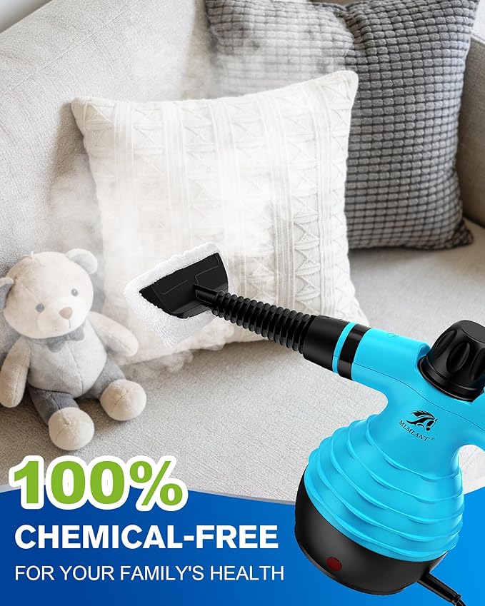 MLMLANT Steam Cleaner, multi-functional portable steam cleaner with a safety lock and a 9-piece accessory set, suitable for steam cleaning carpets, sofas, mattresses, car seats, kitchens